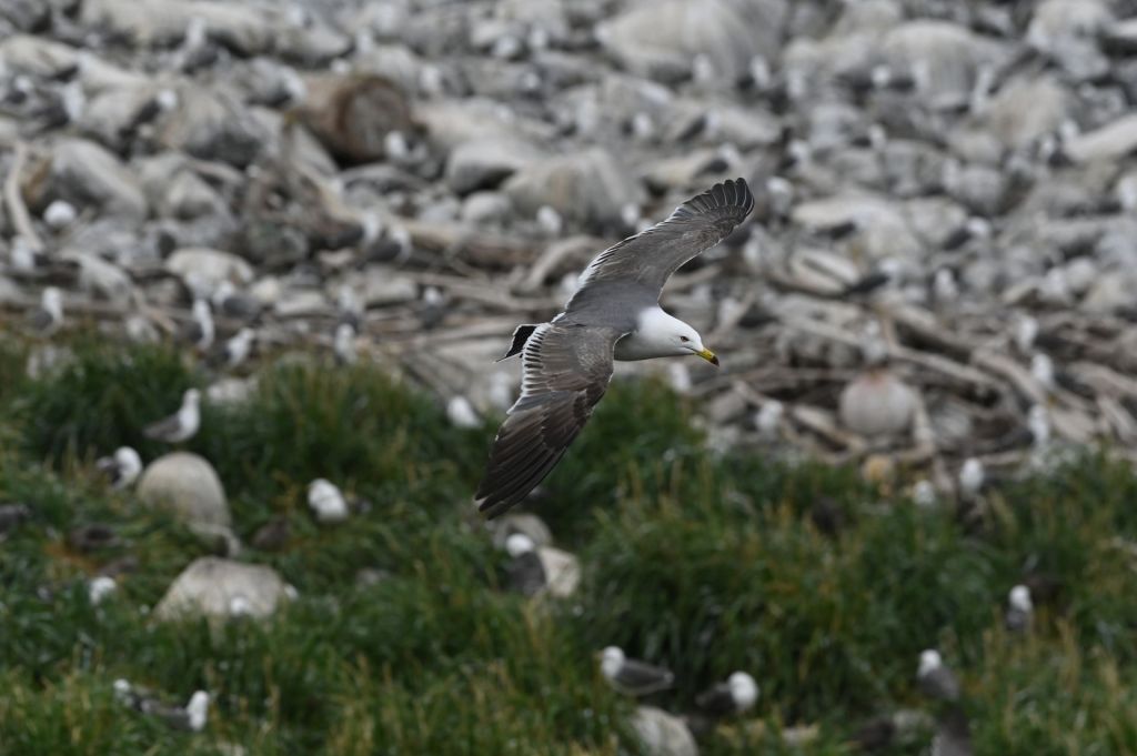 黑尾鷗也是天賣島的一大量點,這邊約有近萬隻的黑尾鷗繁殖,而且緊鄰路邊,在路邊的草叢就可以發現黑尾鷗的小寶寶。位置在黑崎海岸(Kurosaki Coast)一帶